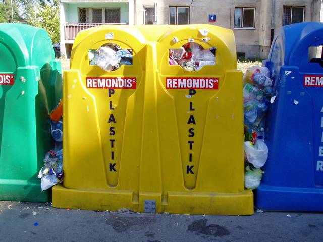 W poniedziałek rano (godz. 9:10) oprócz pojemnika na plastik wypełnione były również szczeliny między pojemnikami. W międzyczasie zapewne kilkaset litrów butelek i toreb trafiło do pojemników "nieselektywnych", gdy mieszkańcy okolicznych bloków rezygnowali ze skorzystania z takiej infrastruktury do segregacji śmieci.
